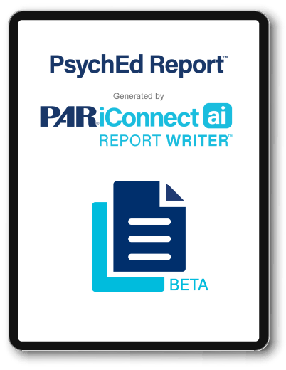 Designed specifically to suit the needs of psychologists performing psychoeducational evaluations, AI Report Writer streamlines workflows without sacrificing clinical judgement, allowing you to spend less time preparing reports and more time face-to-face with students.