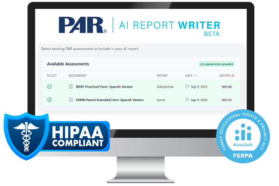 PAR's AI Report Writer delivers a complete, professional-grade report, while upholding HIPAA and FERPA compliance and ensuring secure data handling.